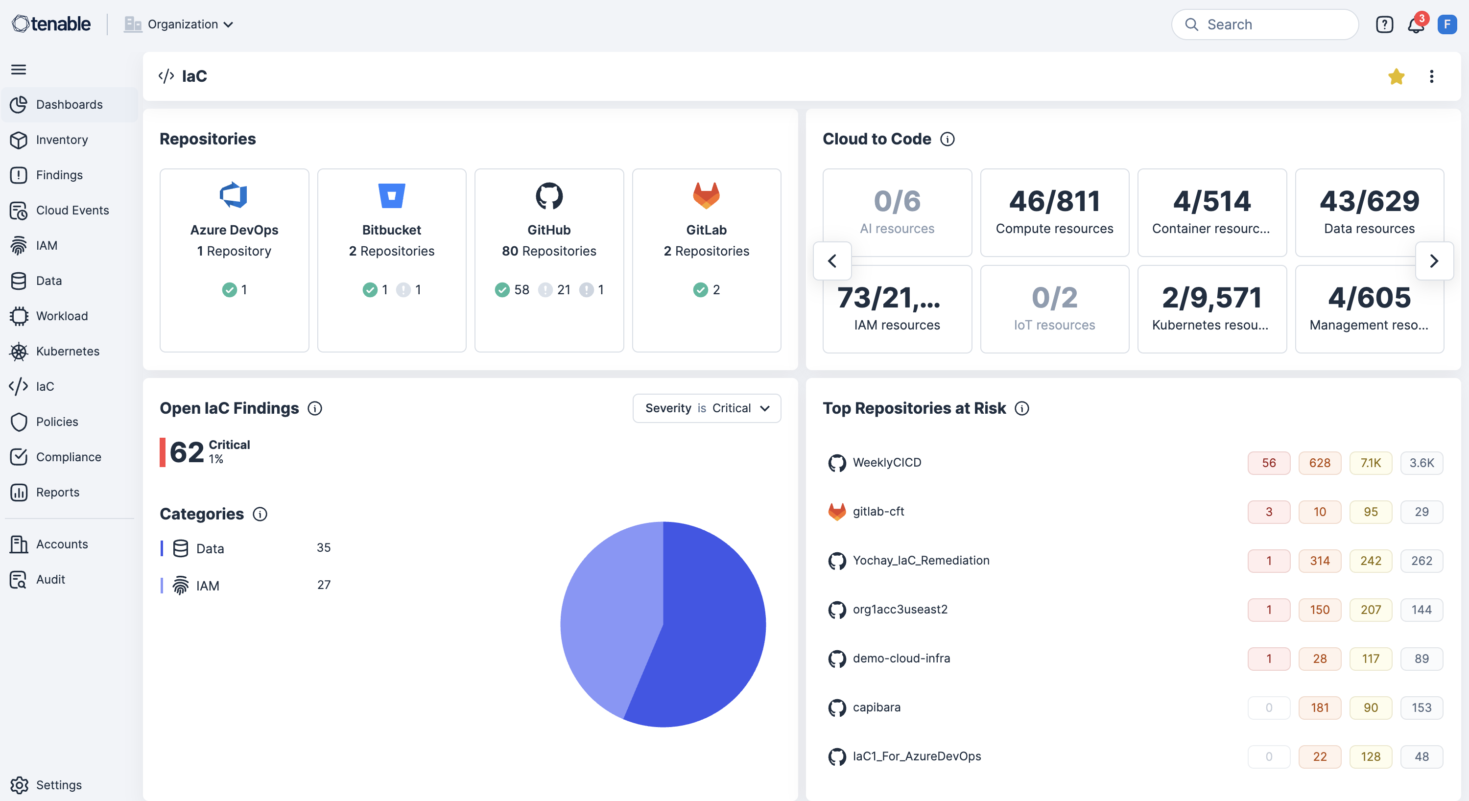تحديد وإصلاح التكوينات غير الصحيحة بسهولة. تُشكل التكوينات غير الصحيحة للسحابة، مثل أوعية التخزين المفتوحة أو الأدوار ذات الأذونات المفرطة أو إعدادات الشبكة غير الآمنة، أحد الأسباب الرئيسية للتعرض للانتهاكات وفشل الامتثال وفقدان البيانات. استخدم Tenable Cloud Security للكشف المستمر عن هذه المخاطر وإعطائها الأولوية من خلال فحص البنية التحتية كتعليمة برمجية (IaC)، وعبر وقت التشغيل وطبقات الهوية.
