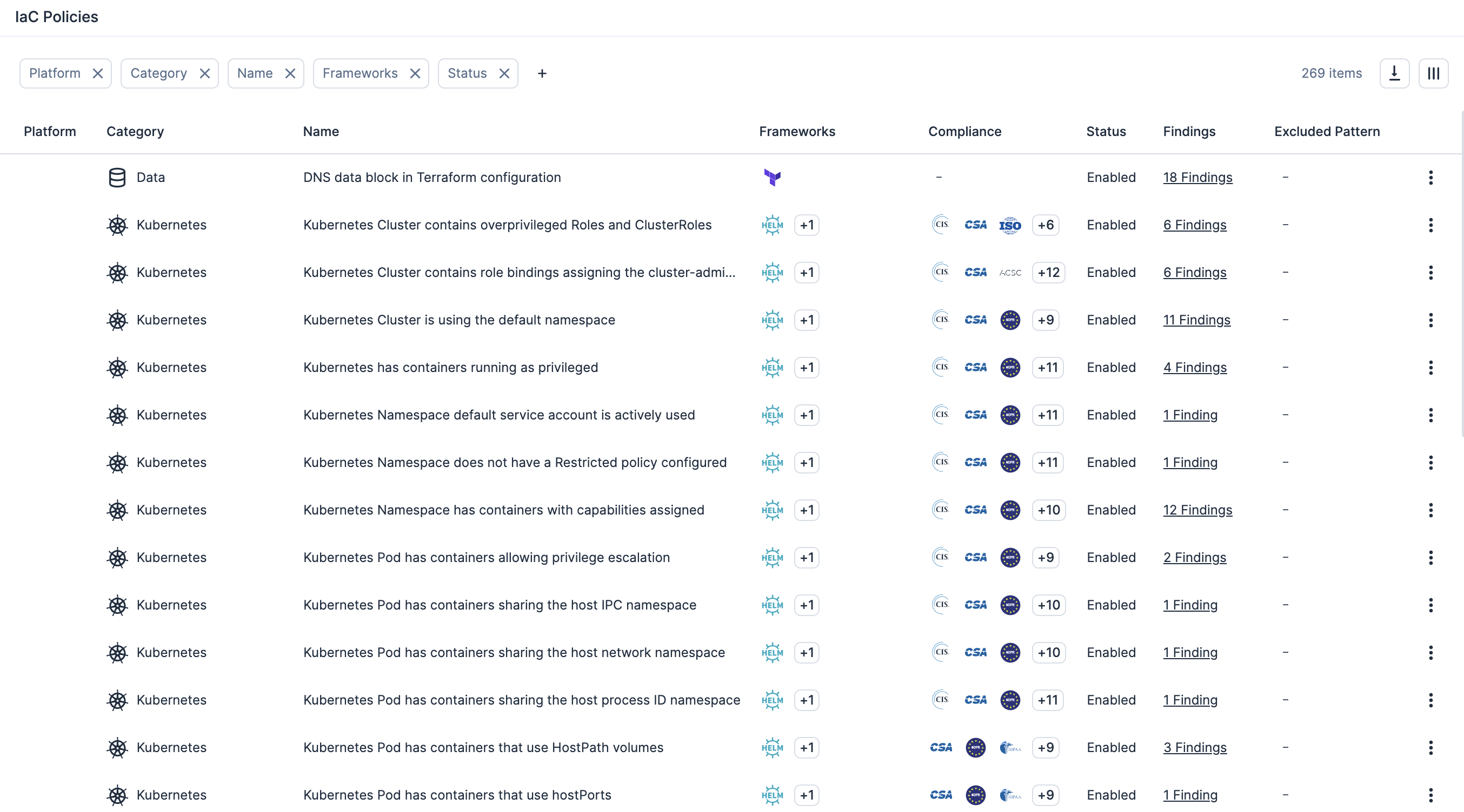 فحص AWS وAzure وOCI وGCP وOCI وKubernetes بشكل مستمر بحثًا عن التكوينات غير الصحيحة وانتهاكات السياسات والموارد المكشوفة للجمهور لإظهار المخاطر على السطح في الوقت الفعلي.